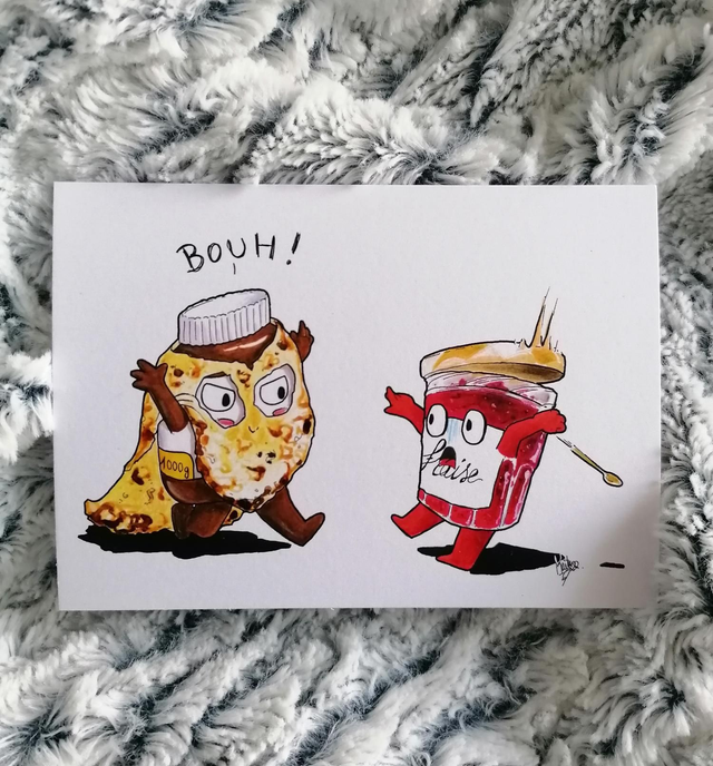 Ces cartes postales sont créées à partir de dessins originaux sur papier qui sont ensuite scannés et reproduits à Reims, plus précisément à la Maison du Faire Part. Je privilégie au maximum une production locale ! 🐱